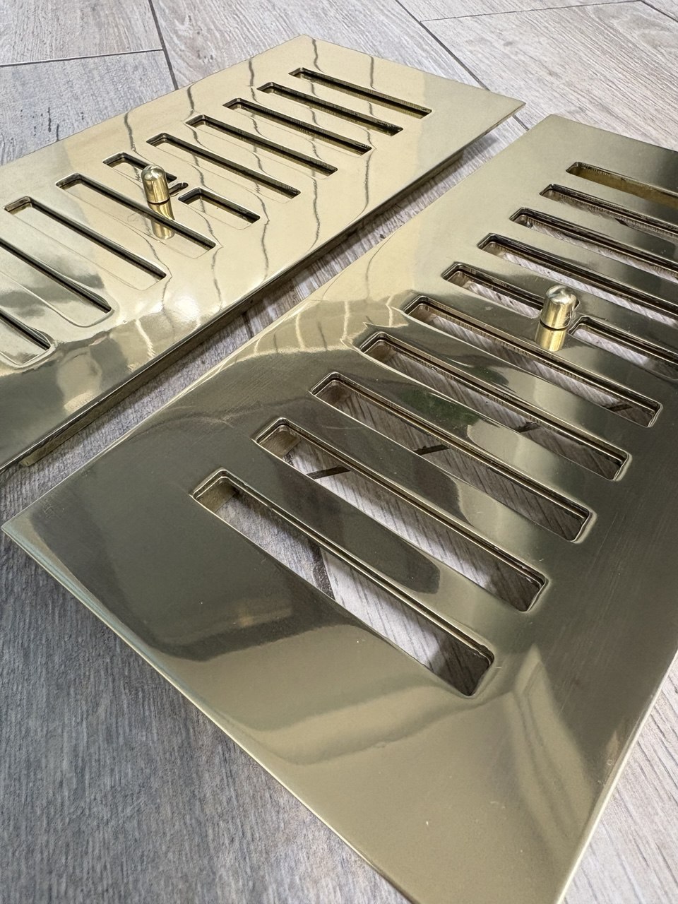Латунная полированная вентиляционная решётка с задвижкой ЛР 355 200x100мм