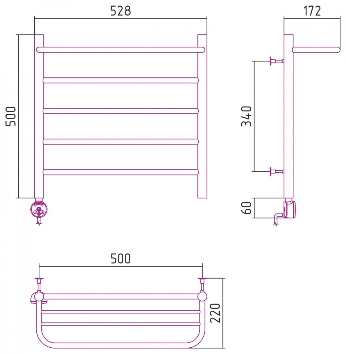 Полотенцесушитель электрический Стилье Формат №20 500x500