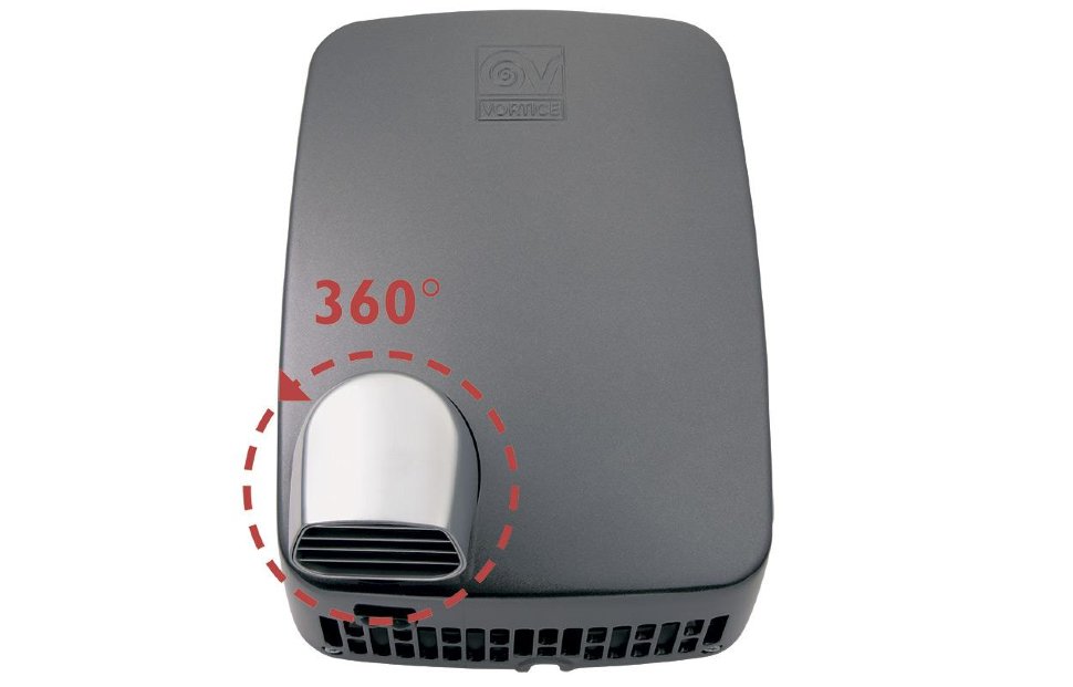 - После того, как руки оказываются в зоне действия инфракрасного датчика, сушилка включается автоматически.